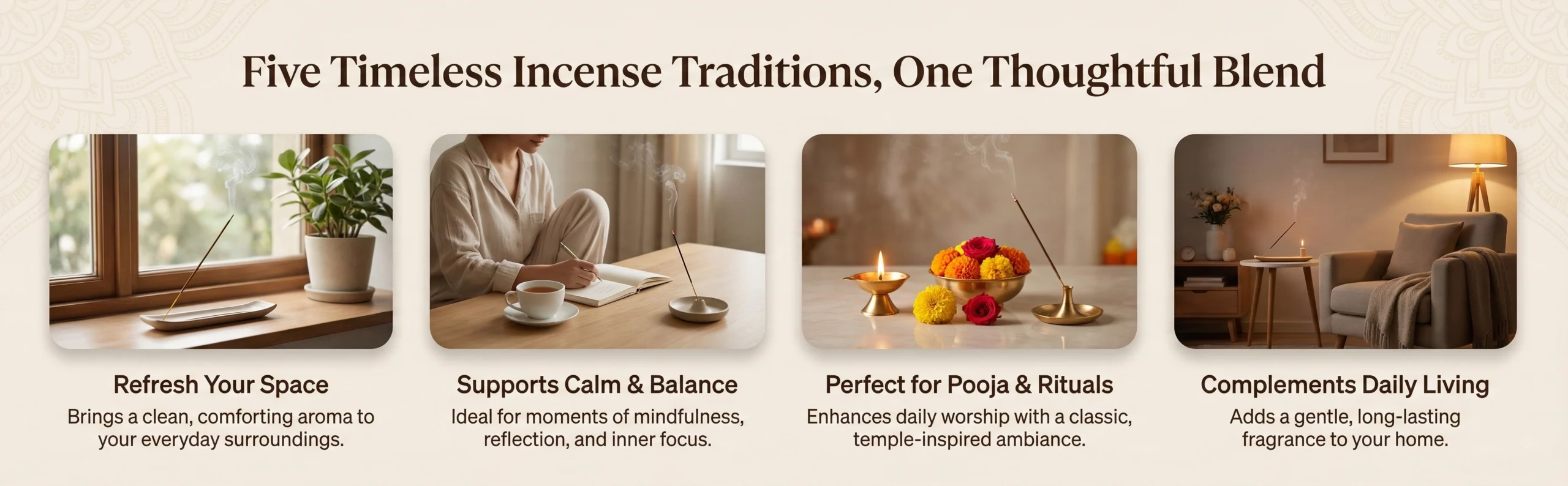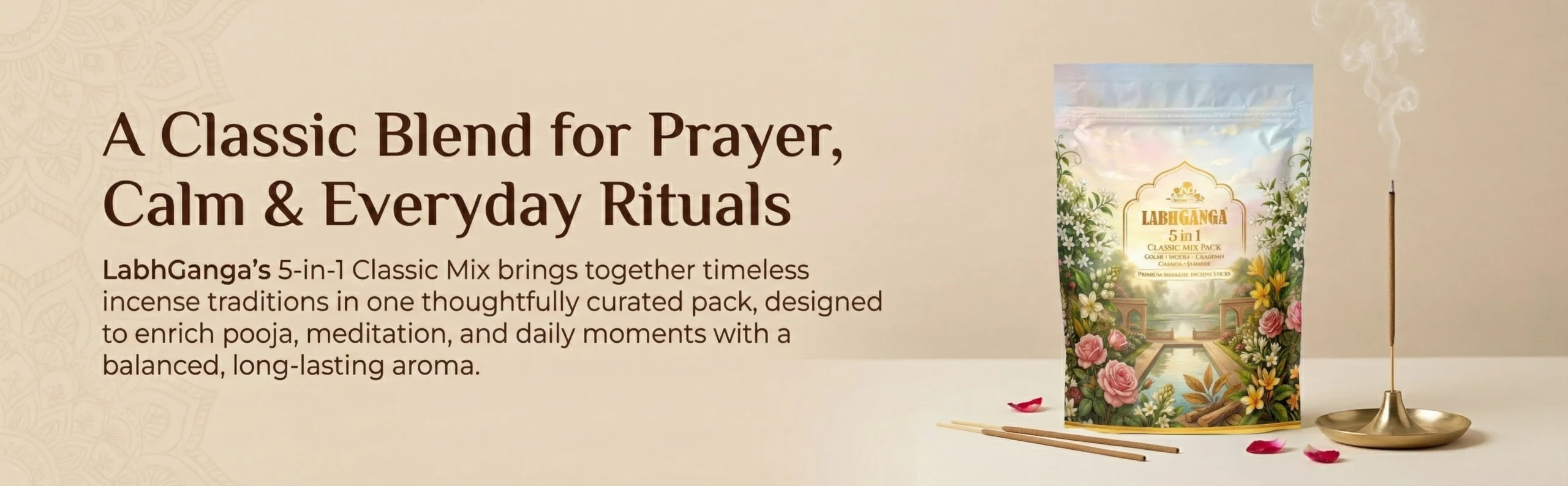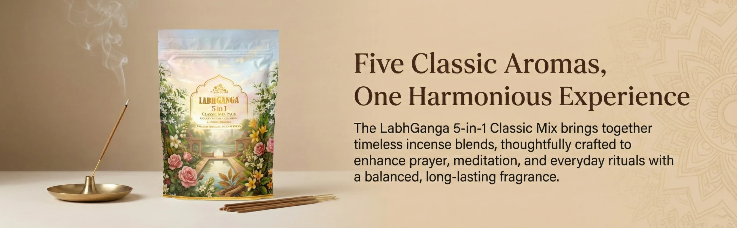 LabhGanga 5-in-1 Classic Mix Premium Aromatic Incense Sticks – Crafted for Pooja, Prayer & Peaceful Living