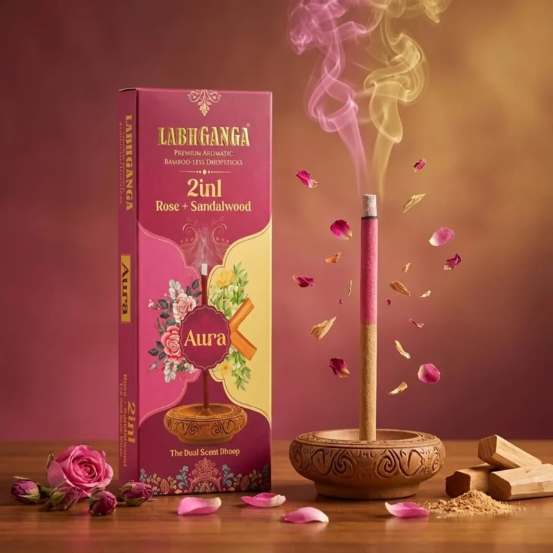 Explore the distinguished fragrance collection of Labhganga Dhoop Sticks, featuring premium notes like Rose, Guggal, Intimate, Mogra, Lavender, Sandalwood, and beyond. Every aroma is curated with care to enrich your spiritual moments with calm sophistication and lasting positivity.