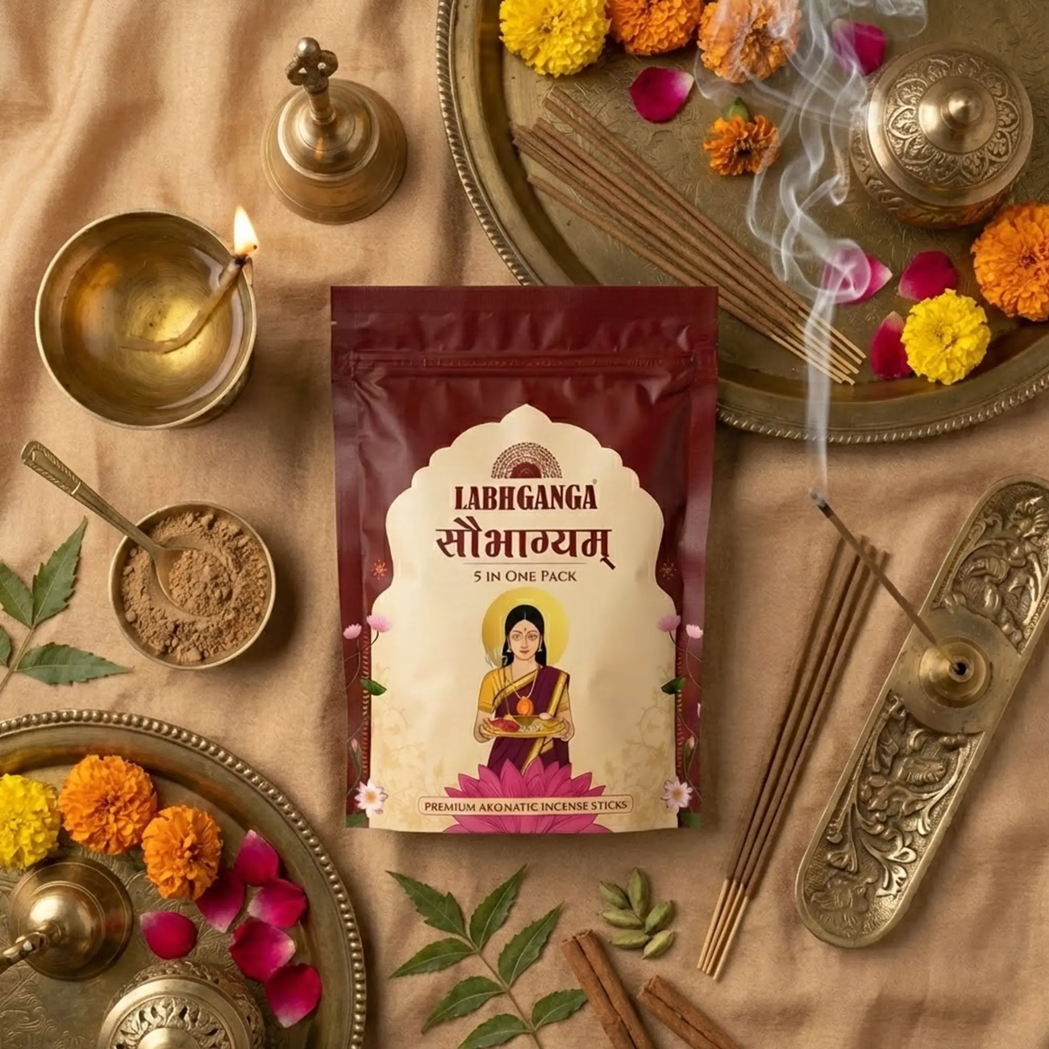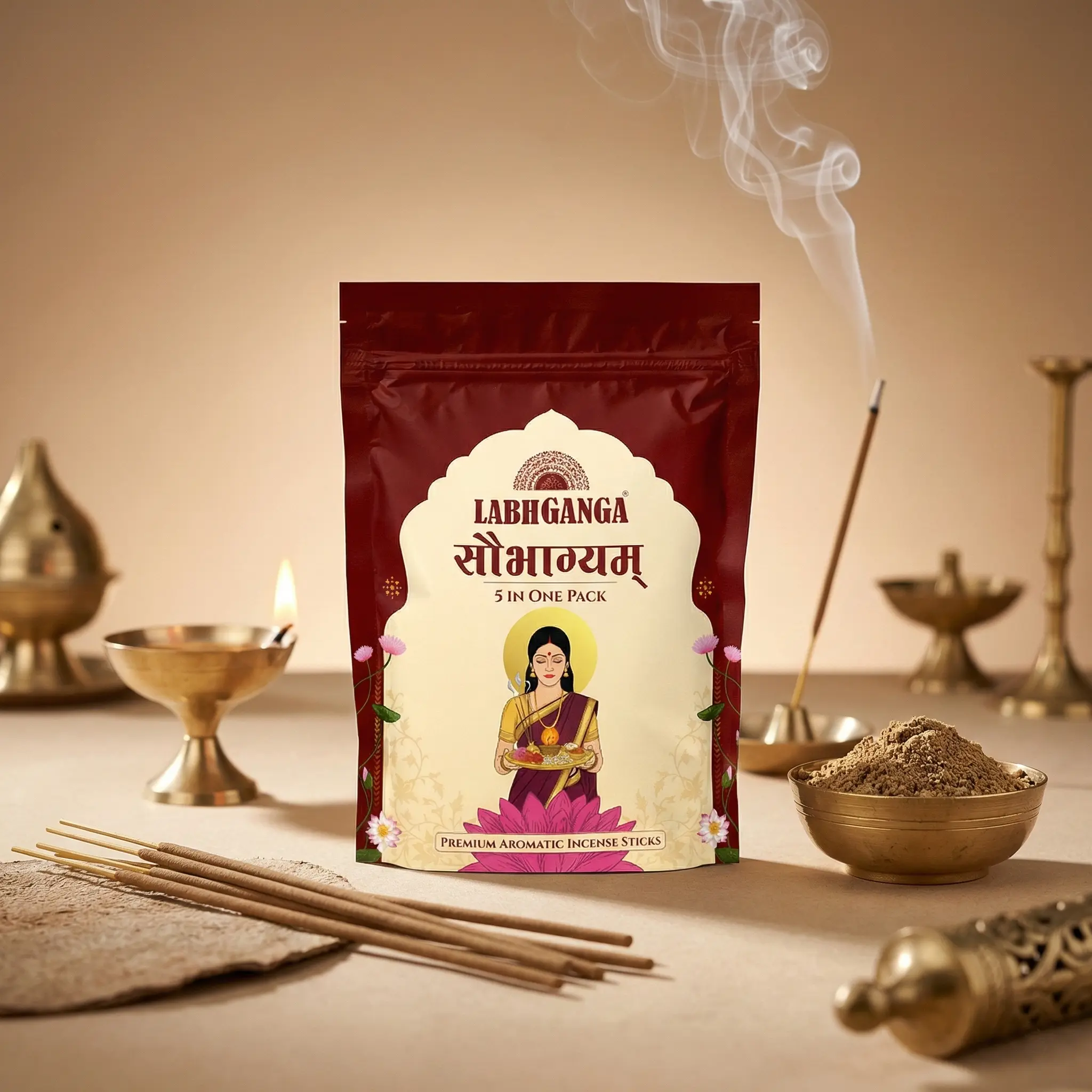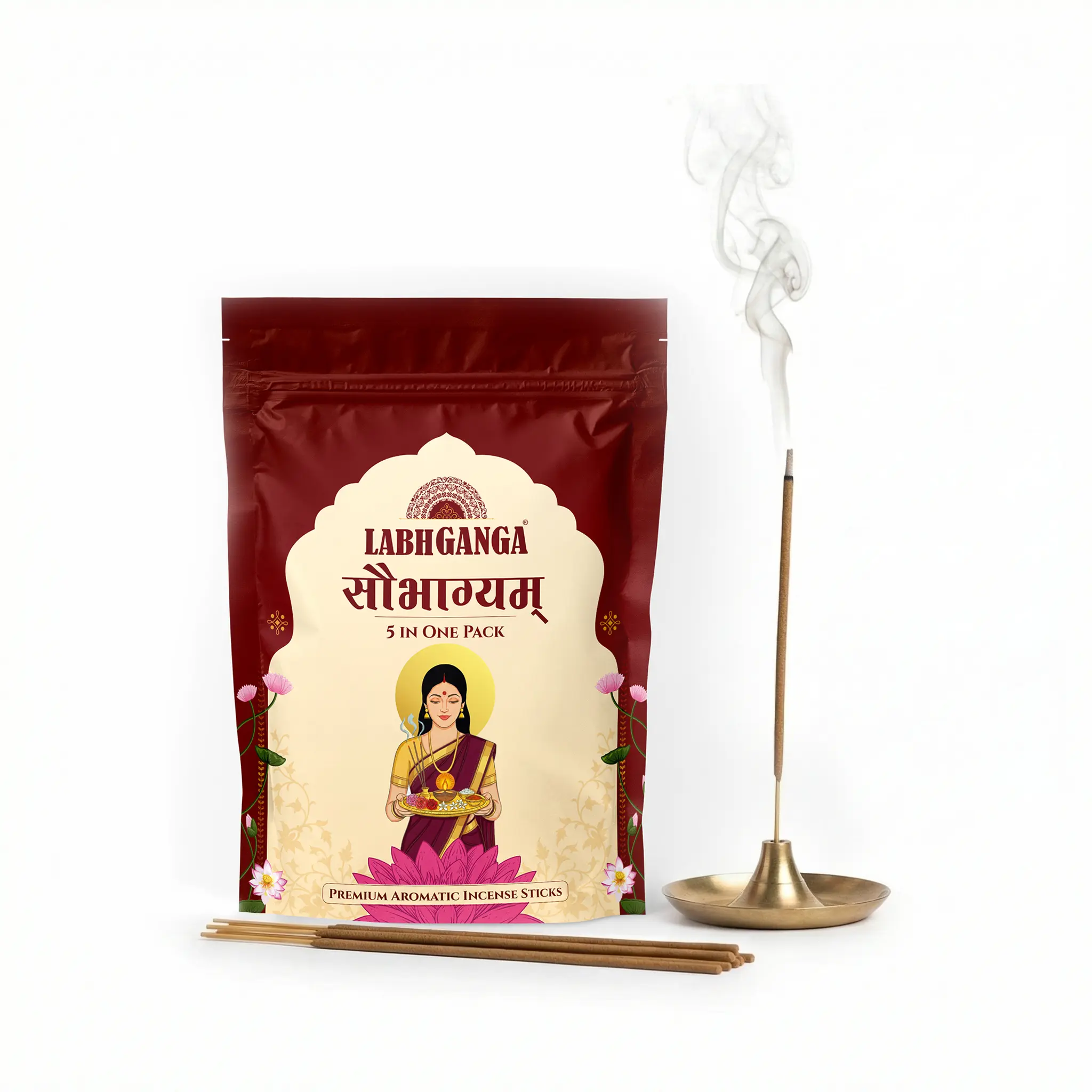 LabhGanga Soubhagyam 5-in-1 Premium Aromatic Incense Sticks | Pure Ingredients | Long-Lasting Fragrance for Pooja, Meditation & Home